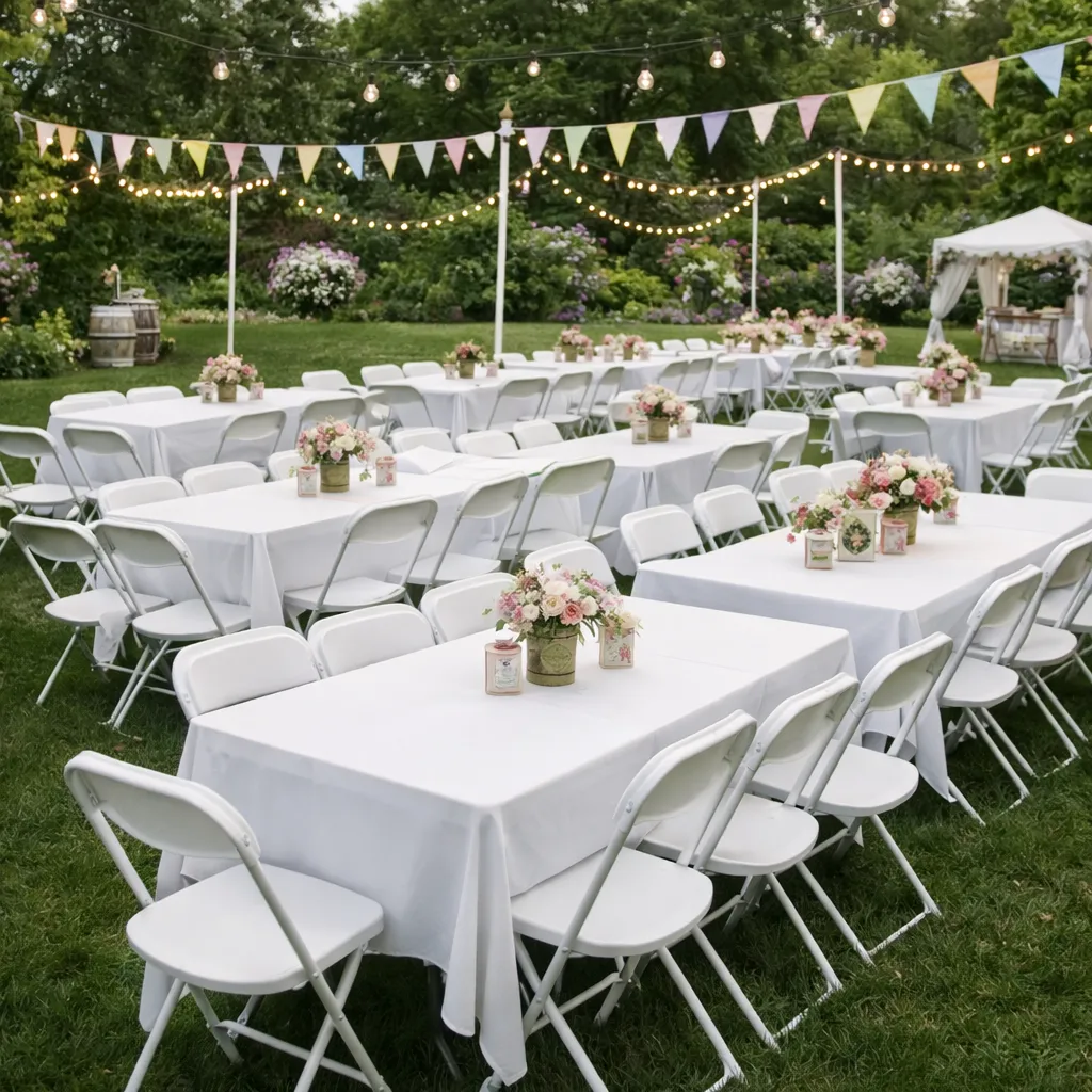 We recommend booking as early as possible, especially for weekends and peak event seasons. Tables, chairs, and flower walls book quickly.